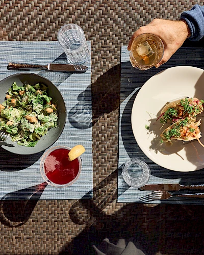 Evenings bring expertly prepared seafood and meat dishes, while mornings are made glorious with a coastal breakfast. Complementing every meal, the lively bar offers handcrafted cocktails, local beers, and curated wines — perfect for any occasion.