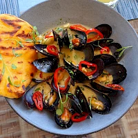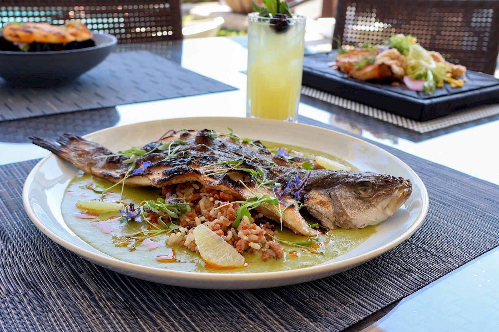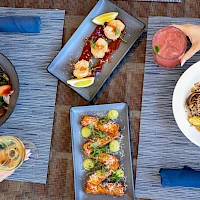 Evenings bring expertly prepared seafood and meat dishes, while mornings are made glorious with a coastal breakfast. Complementing every meal, the lively bar offers handcrafted cocktails, local beers, and curated wines — perfect for any occasion.