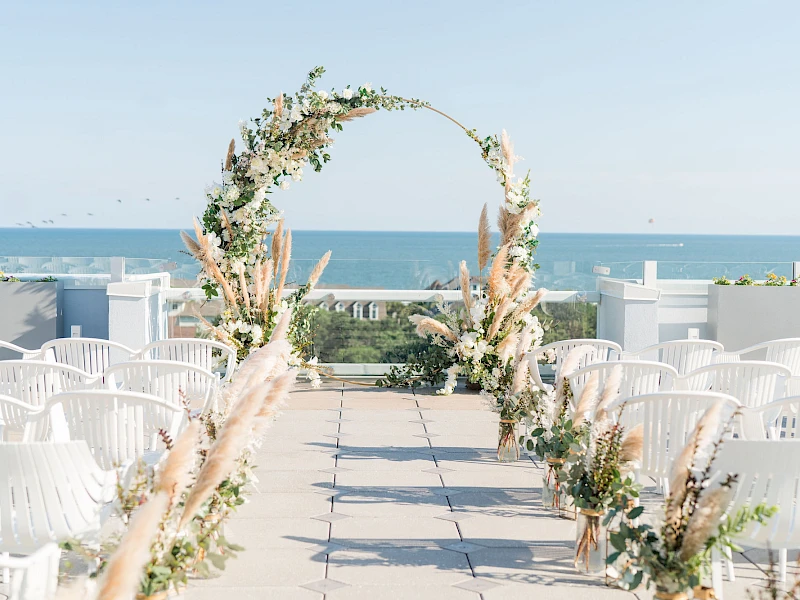 The Indigo Room offers a stunning venue for 75–150 guests, featuring panoramic horizon views, floor-to-ceiling windows, a covered veranda, and an open-air terrace. With breathtaking sunsets and modern Lowcountry charm, it creates an unforgettable backdrop for your special day.