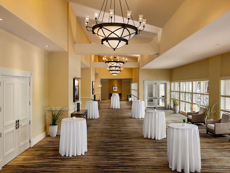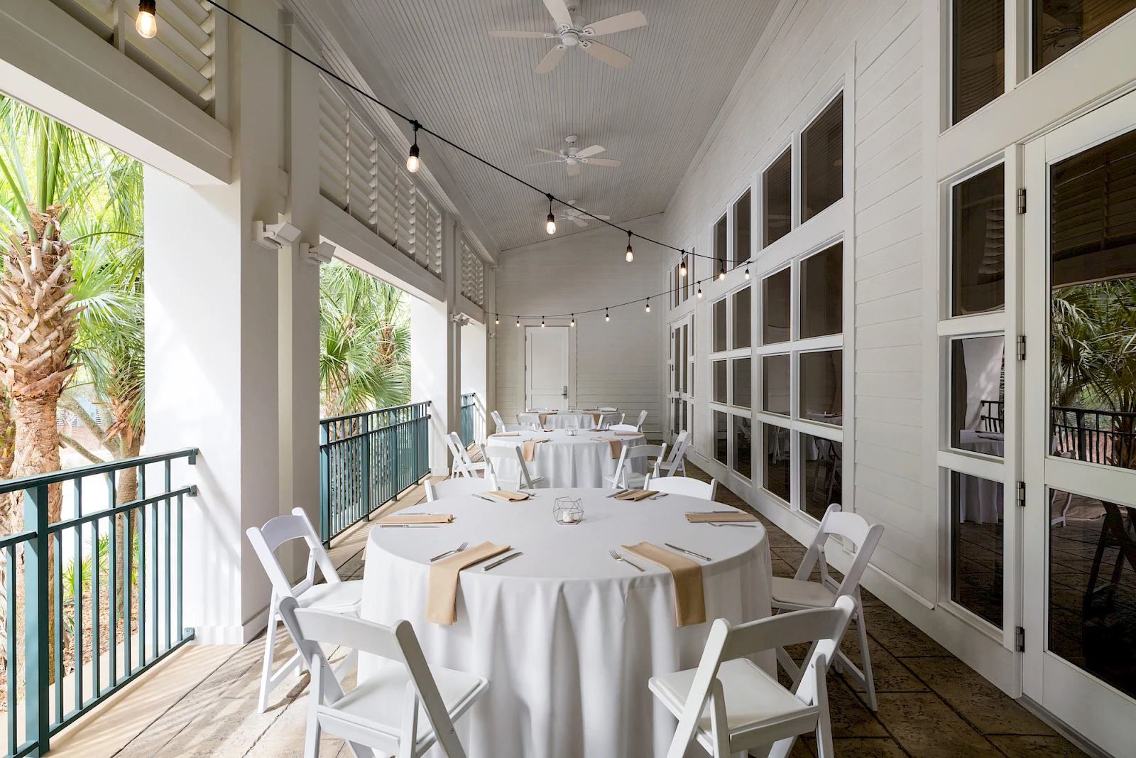 Located near the resort hotels, the Sweetgrass Pavilion offers 10,000 sq. ft. of Lowcountry-inspired event spaces, including two ballrooms and inviting outdoor terraces. The Palms Ballroom is 5,888 sq. ft. and the Tides Ballroom is 3,108 sq. ft.