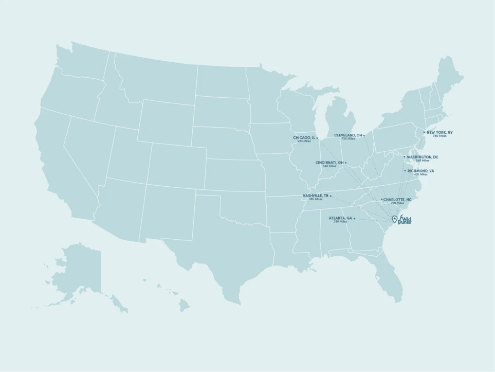 Wild Dunes Resort is located on Isle of Palms next to Charleston, South Carolina. No matter where you're coming from, our hotel and vacation rental options are well worth the trip!