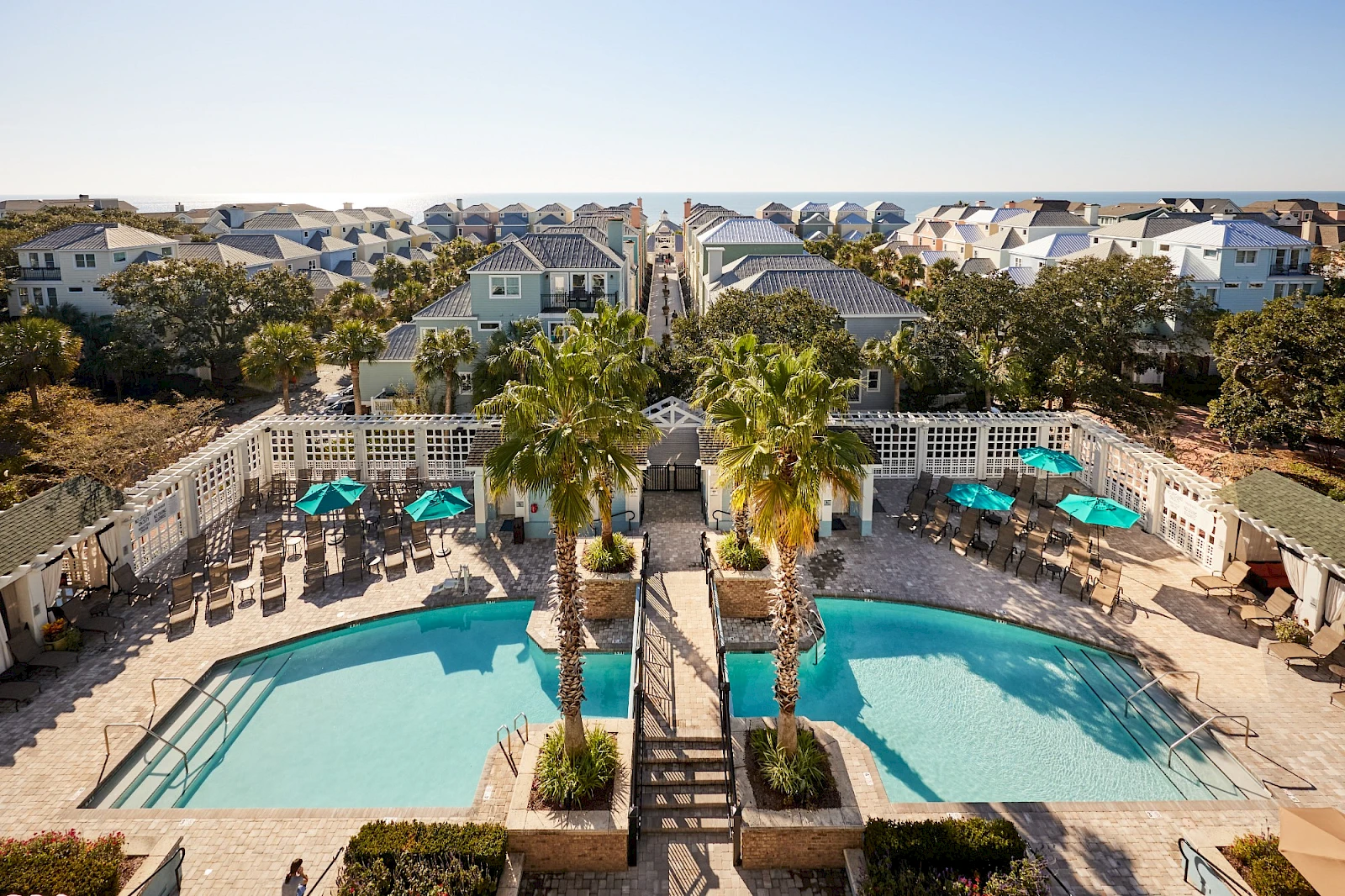 Experience elevated coastal living in our expansive bi-level Presidential Suite with ocean views. This signature suite offers boutique coastal luxury complete with an upper loft and private balcony overlooking the Atlantic Ocean and adults-only pool. Features a formal dining room for eight, elegant living area, king bed, and a spa-style bathroom with jetted tub, dual sinks, walk-in shower, vanity, and walk-in closet. A study area, wet bar, and sleeper sofa in the living area add comfort and convenience to this signature coastal residence.