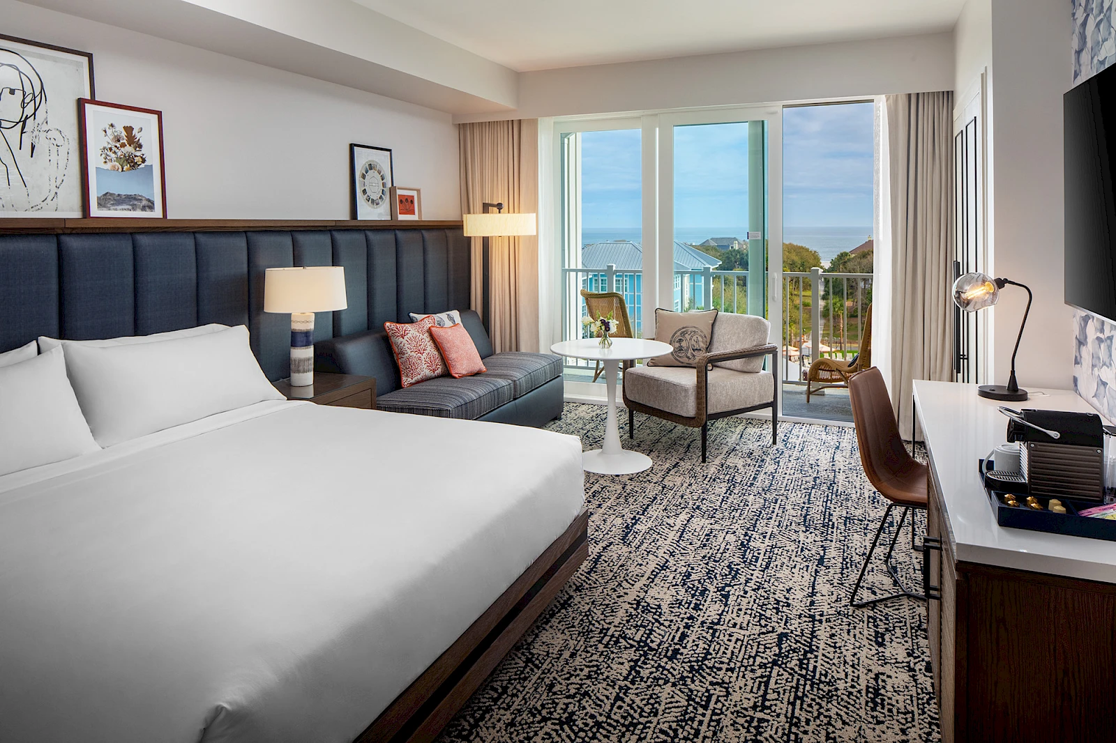 Enjoy clean, contemporary design influenced by a coastal aesthetic. Located just steps away from the soft sands of the Atlantic Ocean, this bright room offers a plush king-size bed, historic Charleston charm, and beautiful views of the Sweetgrass Pool Complex.