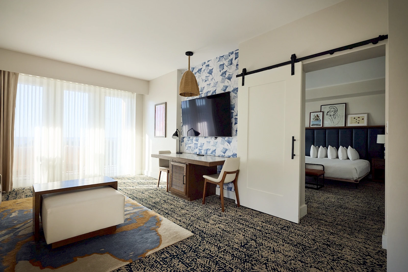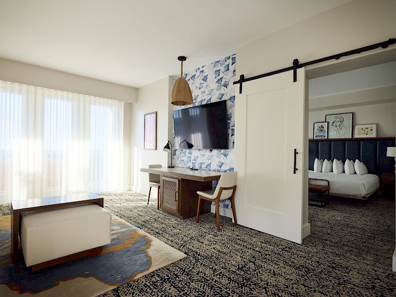 Spread out in this bright one-bedroom suite, featuring clean and contemporary design influenced by a coastal aesthetic. Offering beautiful views of the Sweetgrass pool complex, this suite offers historic Charleston charm and is furnished with a plush king-size bed, a trundle bed or pull-out sofa, plus a separate sitting area.